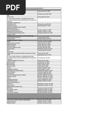 Accenture Holidays List For Cy2016 Pdf Hindu Worship Indian Religions