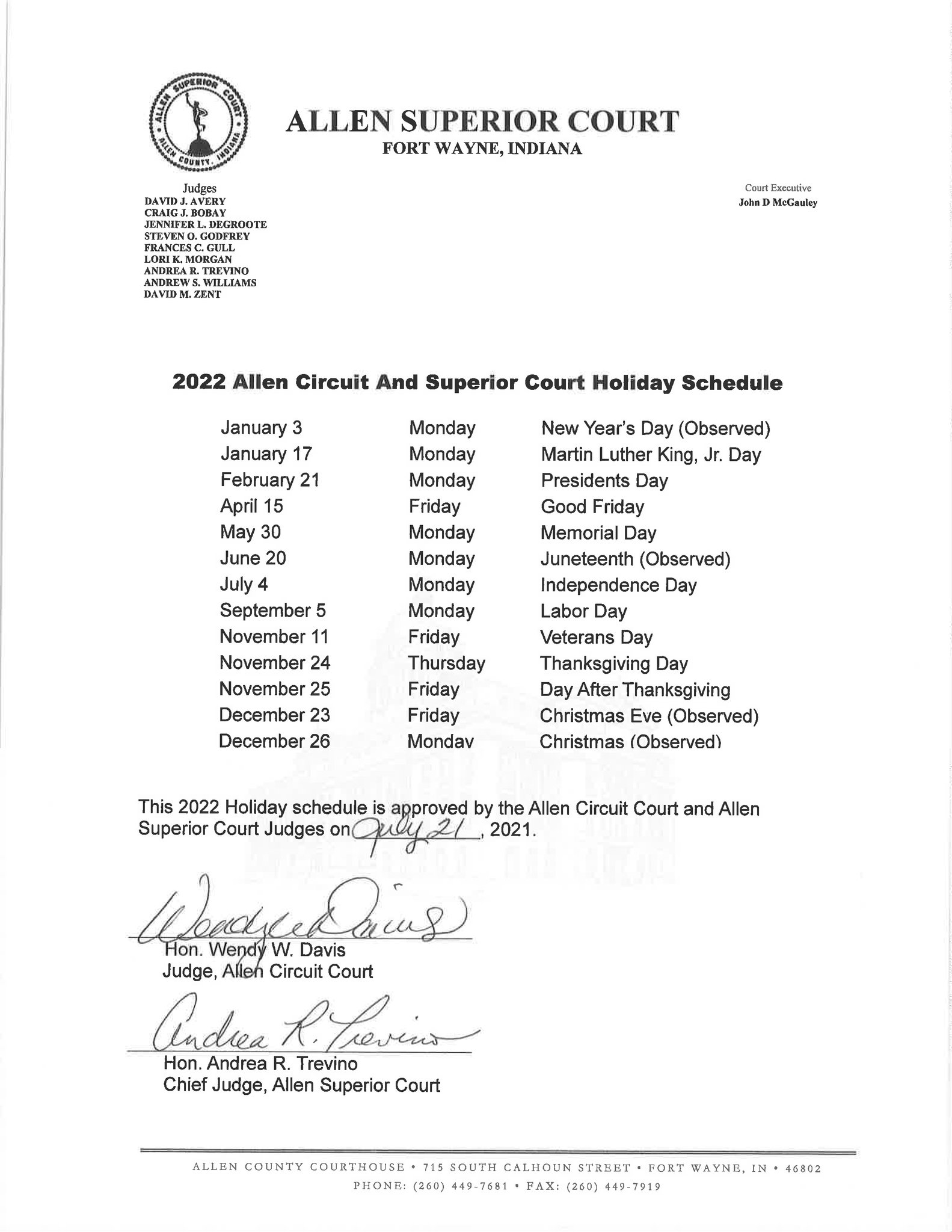 Allen Superior Court On Twitter Allen Circuit And Superior Courts Have Published Their 2022 Schedule Of Court Holidays There Is One Notable Exception From Years Past Columbus Day Has Been Deleted From The Holiday Schedule And Replaced With