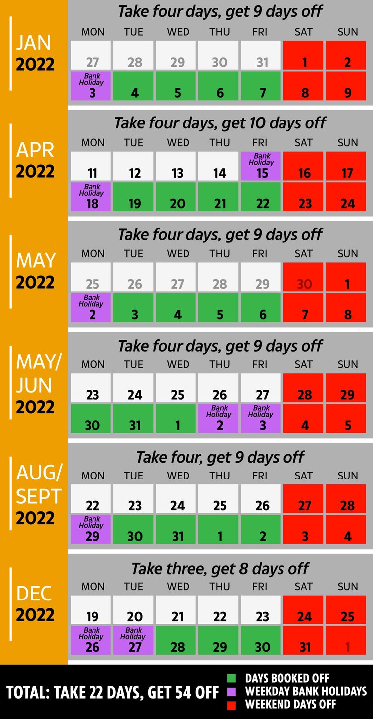 How To Book 54 Days Holiday In 2022 Using Just 22 Days Of Annual Leave
